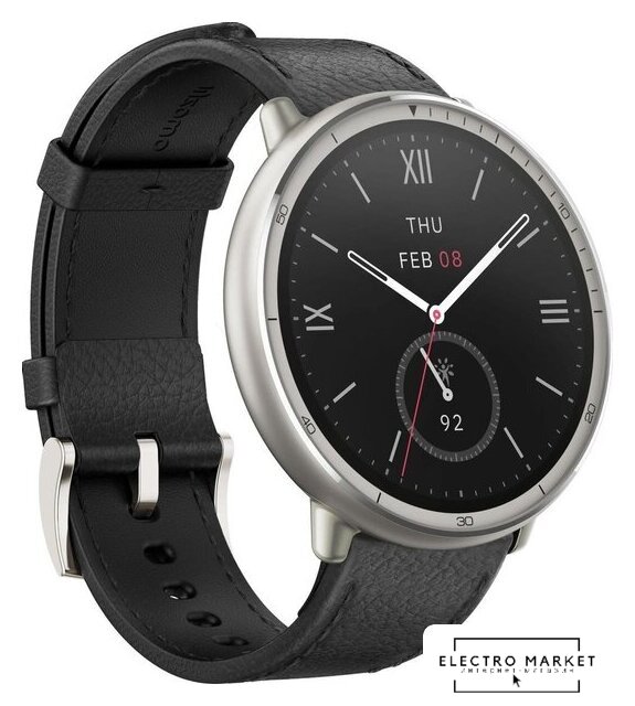 синхронизация с Android/iOS, экран AMOLED 1.82", поддержка SIM-карты: нет, пульсометр, измерение кислорода в крови, AOD, GPS, Bluetooth 5.2, корпус: металл (алюминий), ремешок: силикон