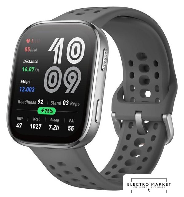 синхронизация с Android/iOS, экран AMOLED 1.47", поддержка SIM-карты: нет, пульсометр, измерение кислорода в крови, AOD, GPS, Bluetooth 6.0, корпус: металл (сталь), ремешок: силикон