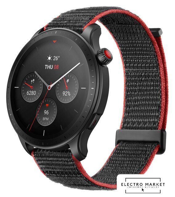 часы-компаньон, поддержка Android/iOS, экран AMOLED 1.75" (390x450, сенсорный), шагомер, пульсометр, время работы: 4 недели 2 суток, корпус: пластик/алюминий, браслет: нейлон