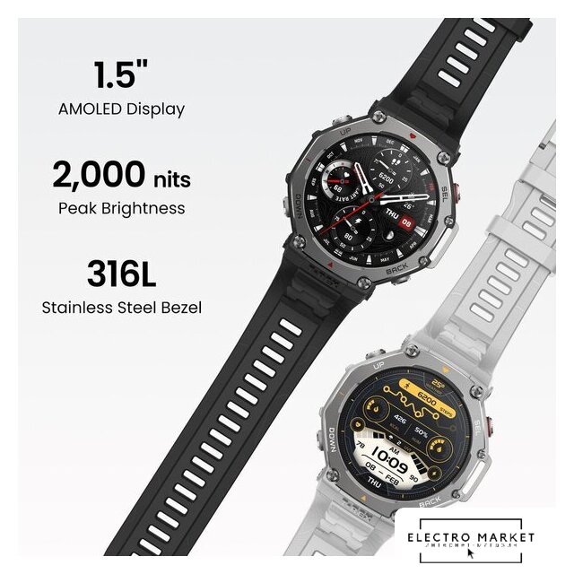 синхронизация с Android/iOS/HarmonyOS, экран AMOLED 1.32", поддержка SIM-карты: нет, пульсометр, измерение кислорода в крови, GPS, Bluetooth 5.2, корпус: металл (сталь), ремешок: металл