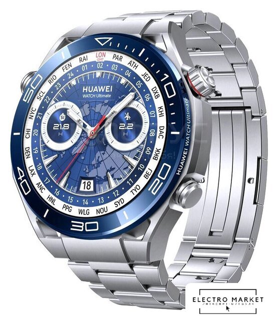 синхронизация с iOS, экран OLED, поддержка SIM-карты: нет, пульсометр, измерение кислорода в крови, ЭКГ, AOD, GPS, Bluetooth 5.3, корпус: металл (алюминий), ремешок: силикон