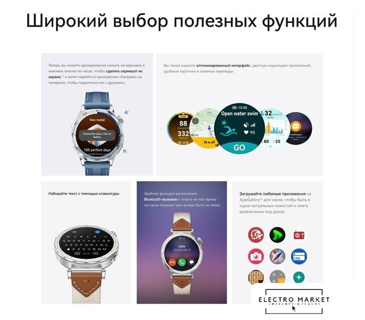Дополнительные функции | отслеживание сна, отслеживание уровня стресса, отслеживание женского здоровья, подсчет потраченных калорий, дыхательные упражнения, таймер, секундомер, компас |