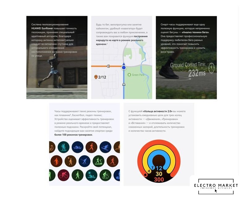 Спортивные профили | силовые тренировки, кардио тренировки, ходьба, гребля, йога, бег, велоспорт, плавание, сноубординг, игровые виды спорта, боевые искусства, катание на лыжах, гольф |