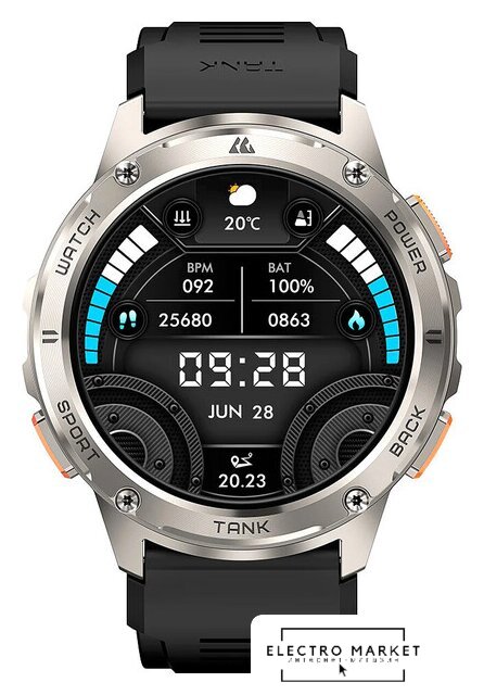 синхронизация с Android/iOS, экран IPS 2.07", поддержка SIM-карты: нет, пульсометр, измерение кислорода в крови, GPS, Bluetooth 5.3, корпус: металл (алюминий), ремешок: силикон