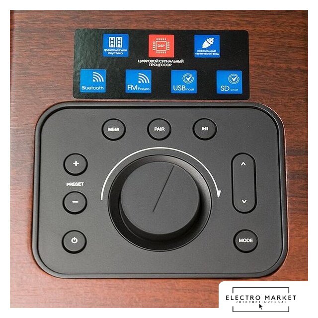 2.0, 90 Вт, подключение по USB, пульт, радио, BT, карты памяти, S/PDIF, выход на наушники