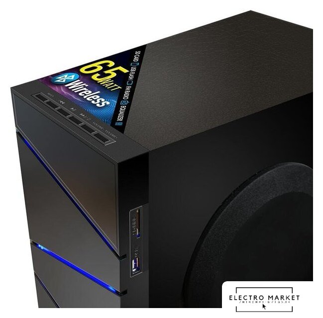 2.1, суммарная мощность 70 Вт, частота 150-20000 Гц, пульт ДУ, FM-радио, Bluetooth