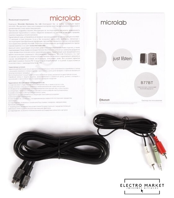 | Комплект поставки | СателлитыКабель 3,5 мм стерео-2RCAСоединительный кабельРуководство пользователя |