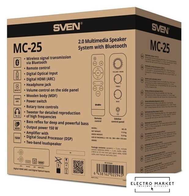 настольная (полочная), 2.0, мощность (RMS) 60 Вт, 50-20000 Гц, МДФ, Bluetooth, пульт ДУ