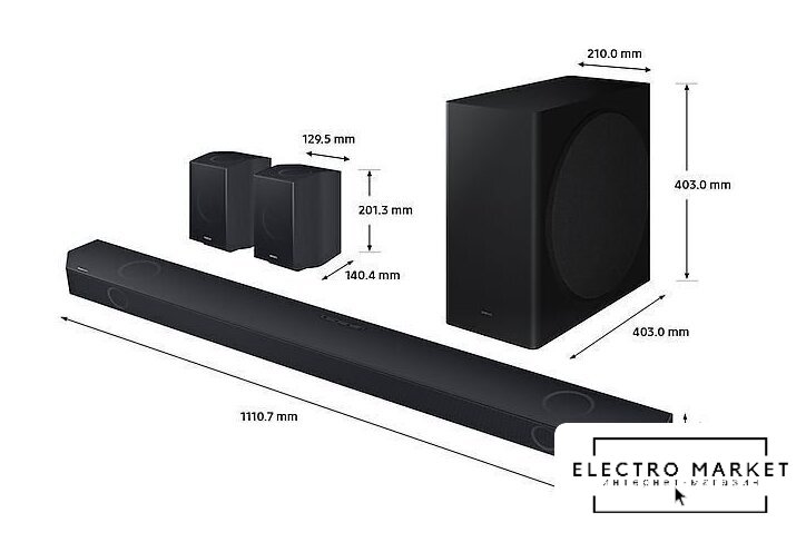 Комплект поставки | - звуковая панель- беспроводной сабвуфер- тыловые колонки- пульт ДУ- батарейки для пульта ДУ- кабель питания (4 шт.)- кабель HDMI- набор для настенного крепежа- документация |