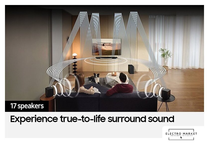 саундбар 7.1.4, 400 Вт, частота 38-20000 Гц, Bluetooth, Wi-Fi, LAN, USB, HDMI ARC, HDMIx2, цвет черный