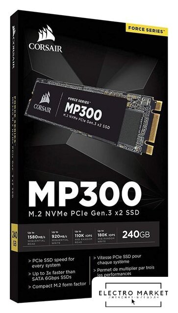 500 ГБ, M.2, PCI Express 3.0 x4 (NVMe 1.4), контроллер Phison PS5015-E15T, микросхемы 3D TLC NAND, последовательный доступ: 3300/2300 MBps, случайный доступ: 300000/550000 IOps