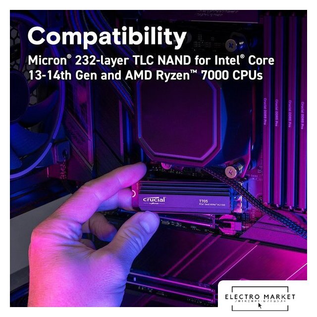 2 ТБ, M.2, PCI Express 5.0 x4, контроллер Phison PS5026-E26, микросхемы 3D TLC NAND