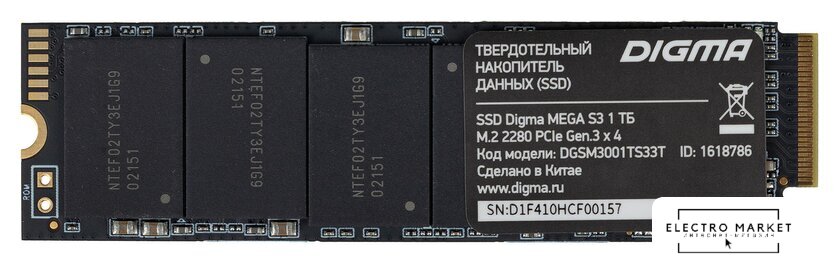 1 ТБ, M.2, PCI Express 3.0 x4 (NVMe 1.3), последовательный доступ: 2400/1800 MBps, случайный доступ: 130000/350000 IOps