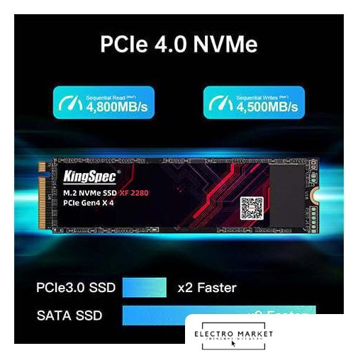 M.2, PCI Express 4.0 x4 (NVMe), контроллер Phison PS5018-E18, микросхемы 3D TLC NAND, последовательный доступ: 7000/6000 MBps, случайный доступ: 900000/1000000 IOps, совместимость с PS5