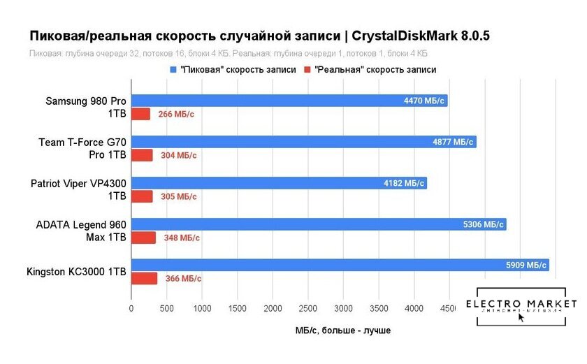 | Средняя скорость случайной записи | 1 000 000 IOps |