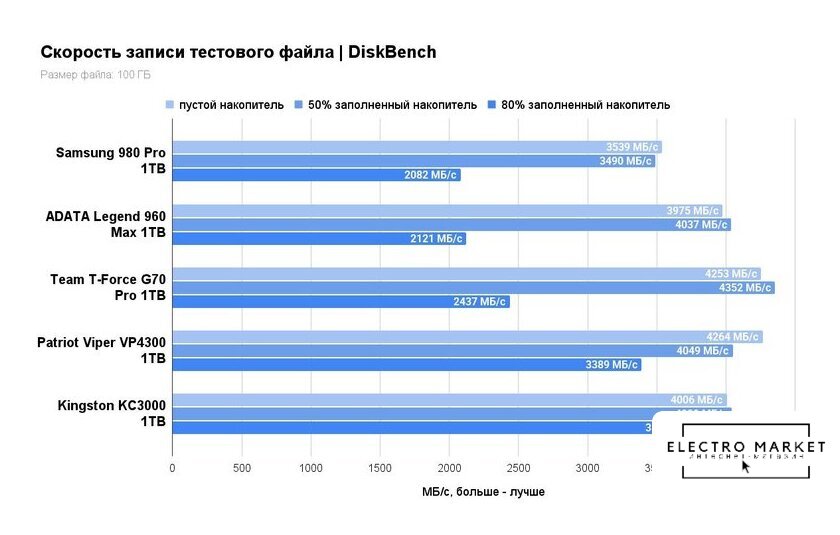 | Скорость последовательной записи | 6 000 Мбайт/с |