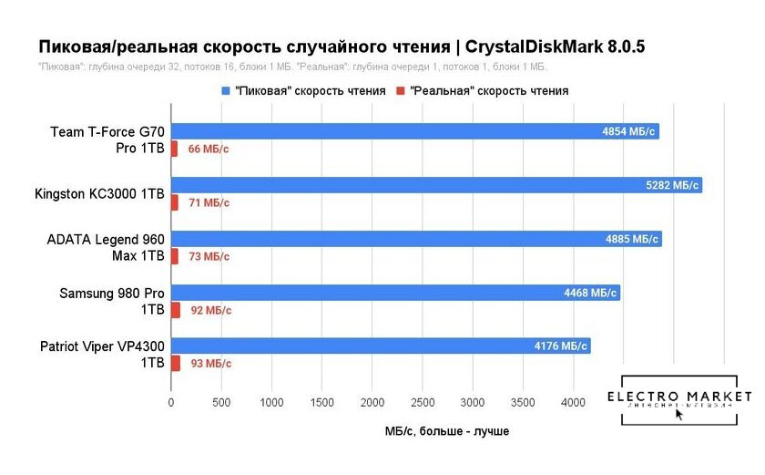 | Средняя скорость случайного чтения | 900 000 IOps |
