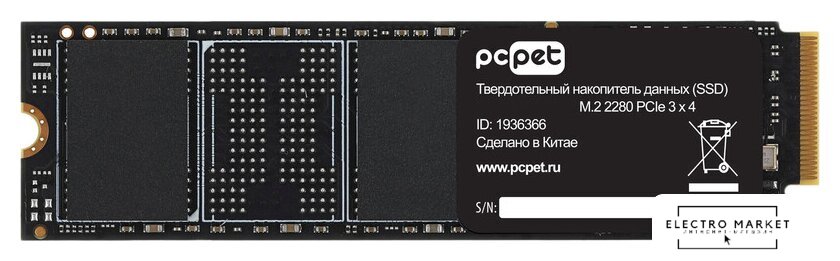 M.2, PCI Express 3.0 x4 (NVMe), микросхемы 3D TLC NAND, последовательный доступ: 2400/850 MBps, случайный доступ: 220000/45000 IOps
