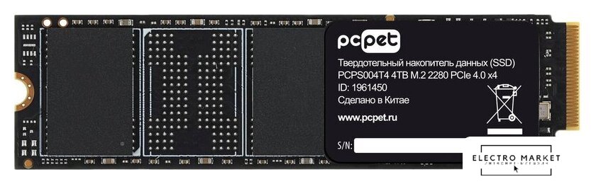 4 ТБ, M.2 2280, PCI Express 4.0 x4 (NVMe 2.0), контроллер Phison PS5025-E25, микросхемы 3D TLC NAND, последовательный доступ: 7000/6900 МБайт/с, случайный доступ: 1050000/1350000 IOps, DRAM-буфер, совместимость с PS5