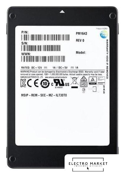 6.4 ТБ, 2.5", SAS 4 (24G), микросхемы TLC, последовательный доступ: 4200/4100 МБайт/с, случайный доступ: 720000/355000 IOps