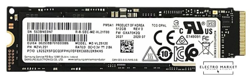 256 ГБ, M.2, PCI Express 4.0 x4, контроллер Samsung Elpis, микросхемы 3D TLC NAND