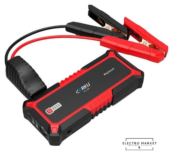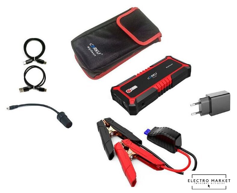 | Комплект поставки | – Устройство CARKU PRO-10;– Сетевой адаптер для зарядки устройства от 220В;– Интеллектуальные пусковые провода с зажимами для подключения к автоаккумулятору;– Адаптер автоприкуривателя типа «мама» для подключения приборов 12В;– Кабель USB / USB Type-C;– Кабель USB Type-C / USB Type-C;– Инструкция по эксплуатации на русском языке;– Сумка для переноски и хранения комплекта. |
