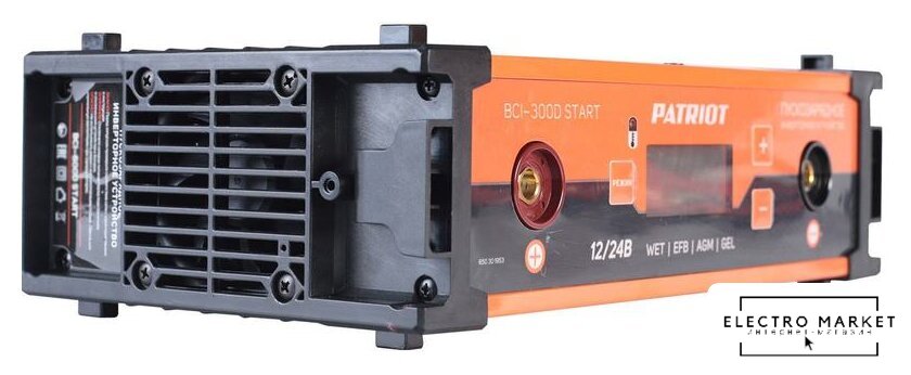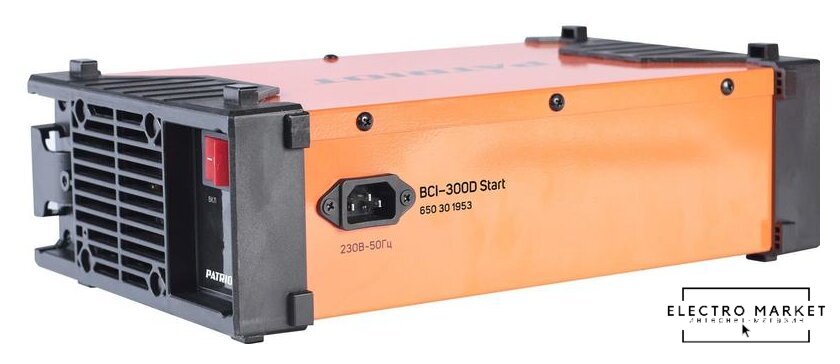 ёмкость заряжаемой батареи: 40–400 А·ч, ток зарядки: 35 А, максимальный пусковой ток: 300 А, масса: 15.4 кг