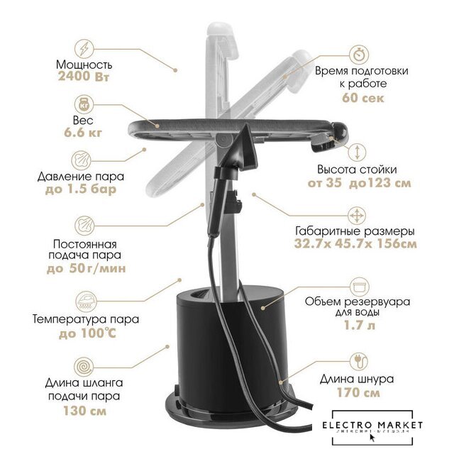 отпариватель, напольный, 2200 Вт, резервуар: 3 л