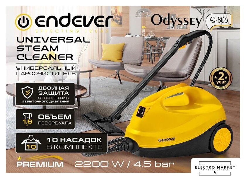 пароочиститель, напольный, 2200 Вт, резервуар: 2 л