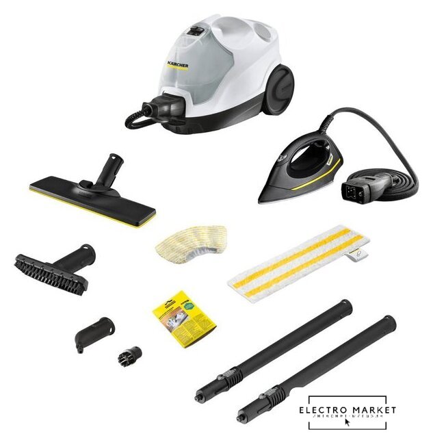 Дополнительные насадки и приспособления | - Универсальная салфетка для пола EasyFix: 1 шт.- Обтяжка из микроволокна для ручной насадки: 1 шт.- Порошок антинакипина: 3 шт.- Точечное сопло- Ручная насадка- Круглая щетка, черная: 1 шт.- Паровой утюг EasyFinish- Насадка для пола: EasyFix- Удлинительные трубки (2 х 0,5 м) |