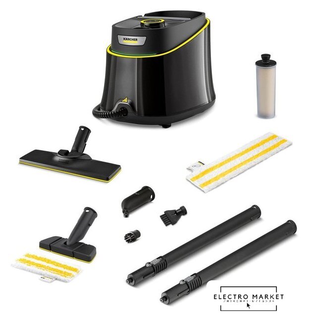 | Дополнительные насадки и приспособления | Универсальная салфетка для пола EasyFix: 1 шт.Антинакипин (картридж): 1 шт.Точечное соплоГибкая ручная насадкаМалая круглая щетка (черная): 1 шт.Щетка для очистки швовНасадка для пола: EasyFixКоличество удлинительных трубок с подводкой пара: 2 шт.Длина удлинительных трубок с подводкой пара: 0.5 м |