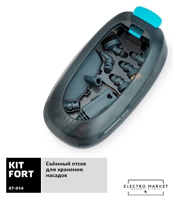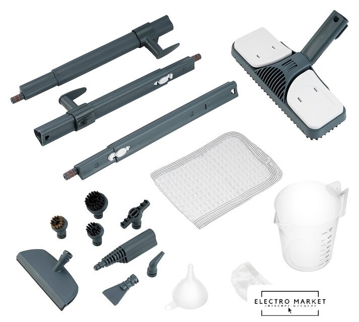 Дополнительные насадки и приспособления | угловая насадка, плоская ворсовая щетка, большая и маленькая нейлоновые щетки, латунная щетка, мерный стакан, воронка, скребок |