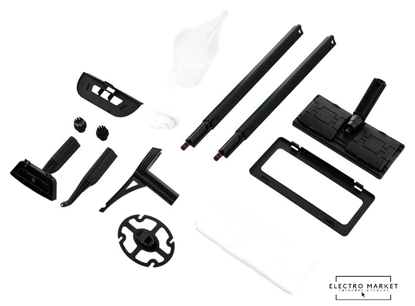 | Дополнительные насадки и приспособления | - тряпка для отпаривания;- латунная щетка;- тряпка для пола;- насадка для отпаривания;- рамка для ковра;- мерный стакан;- круглая нейлоновая щетка;- держатель шнура;- держатель для одежды;- запасные уплотнительные кольца;- колпачок на паровое сопло. |