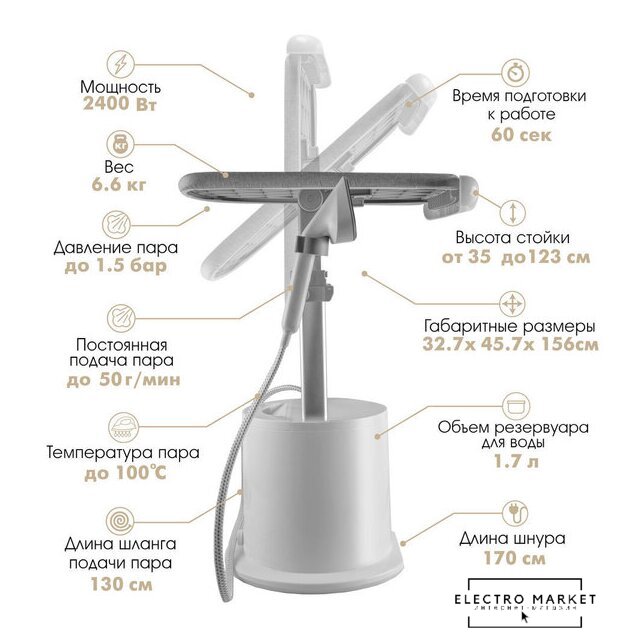 отпариватель, напольный, 2000 Вт, резервуар: 2.5 л