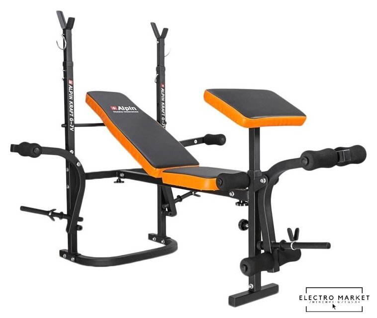 | Конструкция | стойка для штанги, скамья для жима штанги, парта Скотта, механизм для баттерфляя, блок для ног |