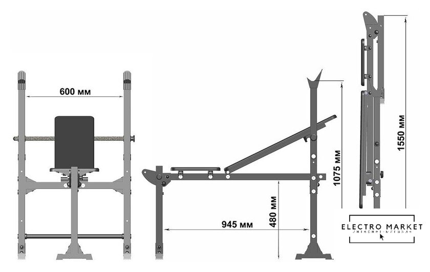 | Конструкция | стойка для штанги, скамья для жима штанги |