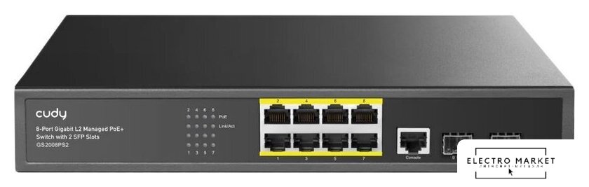 управляемый 2-го уровня, DIN-рейка, матрица 9.6 Гбит/с, 8xGbit, 4xSFP
