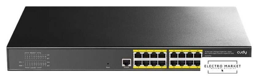 неуправляемый, настольный/стоечный, матрица 7.2 Гбит/с, 5.36 Mpps, 16x100Mbit, 2xGbit, 2xGbit/SFP, 2xSFP, PoE, бюджет 240 Вт
