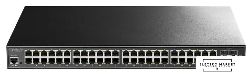управляемый уровня 2+, настольный/стоечный, матрица 256 Гбит/с, 48xGbit, 4xSFP, PoE, бюджет 800 Вт