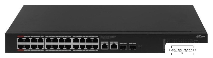 настраиваемый (smart), настольный/стоечный, матрица 56 Гбит/с, 26xGbit, 2xSFP, PoE