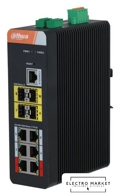 неуправляемый, настенный/DIN-рейка, матрица 12 Гбит/с, 8.93 Mpps, 8xGbit, 2xSFP, PoE, бюджет 185 Вт