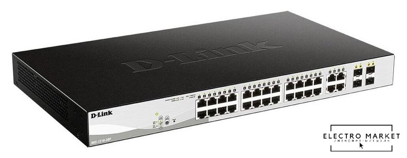 настраиваемый (smart), настольный/стоечный, матрица 56 Гбит/с, 41.7 Mpps, 24xGbit, 4xGbit/SFP, PoE, бюджет 193 Вт