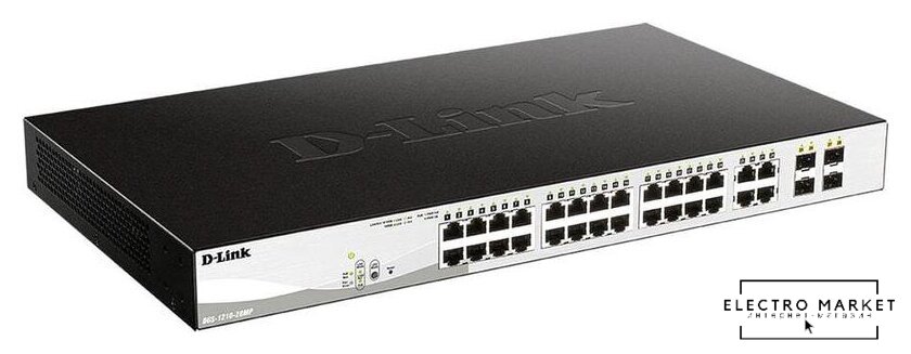 управляемый уровня 2+, настольный/стоечный, матрица 128 Гбит/с, 24xGbit, 4xGbit/SFP, PoE, бюджет 400 Вт