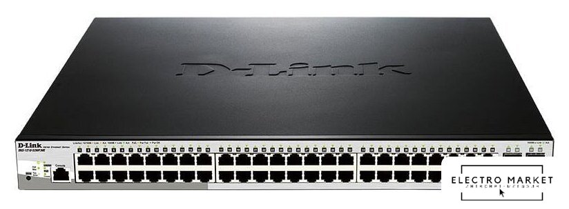 управляемый 3-го уровня, стоечный, матрица 168 Гбит/с, 125 Mpps, 24xGbit, 2x10Gbit, 4xSFP+, PoE, бюджет 370 Вт