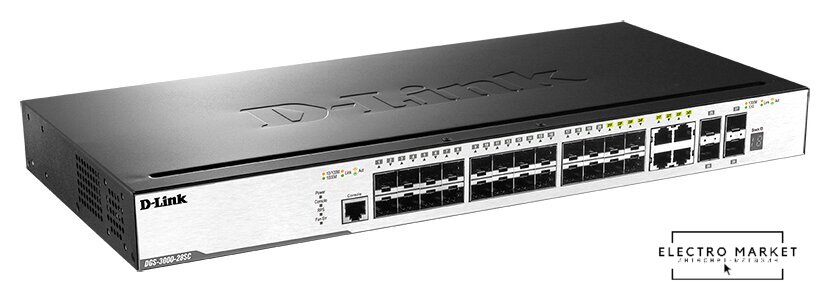 управляемый 3-го уровня, стоечный, матрица 640 Гбит/с, 24xSFP+, 2xQSFP+