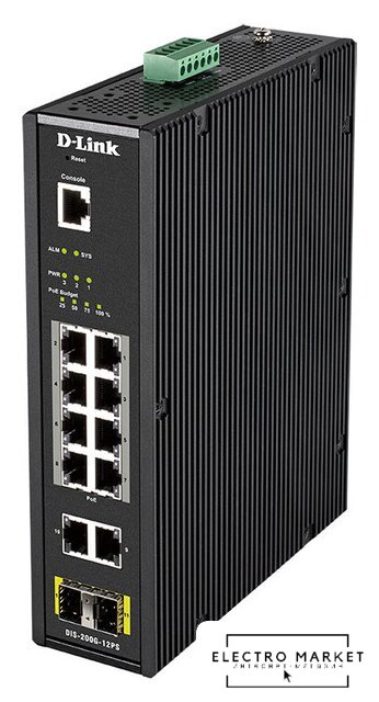 | Комплектация | • Коммутатор DIS-200G-12PS• Консольный кабель с разъемом RJ-45• Комплект для монтажа на стену• Комплект для установки на DIN-рейку• Краткое руководство по установке |