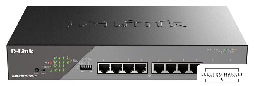 настраиваемый (smart), настольный/стоечный, матрица 20 Гбит/с, 14.9 Mpps, 8xGbit, 2xSFP, PoE, бюджет 130 Вт