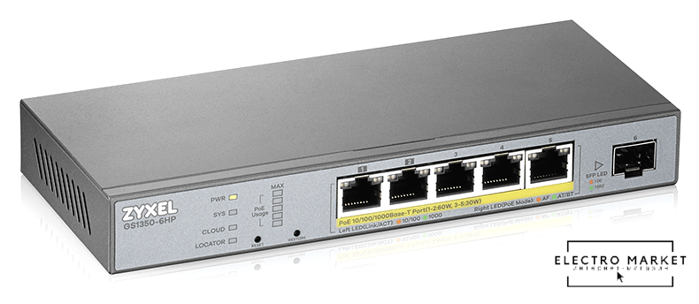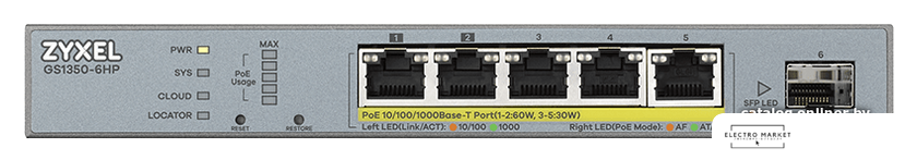 неуправляемый, настольный, матрица 80 Гбит/с, 28.8 Mpps, 5x2.5/5Gbit, PoE, бюджет 60 Вт
