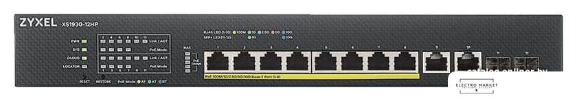 управляемый 3-го уровня, стоечный, матрица 168 Гбит/с, 125 Mpps, 24xGbit, 2x10Gbit, 4xSFP+, PoE, бюджет 370 Вт