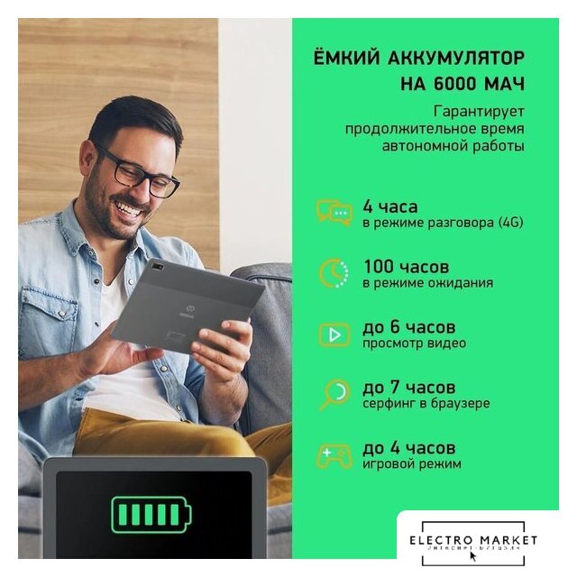 | Емкость аккумулятора | 6 000 мА·ч |